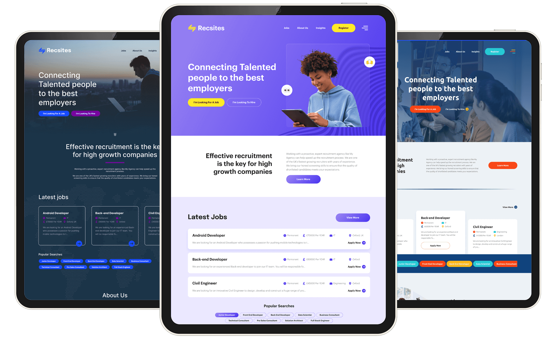 Choose from our proven, high-converting recruitment website templates — then let us tailor everything to your brand, messaging, and goals.